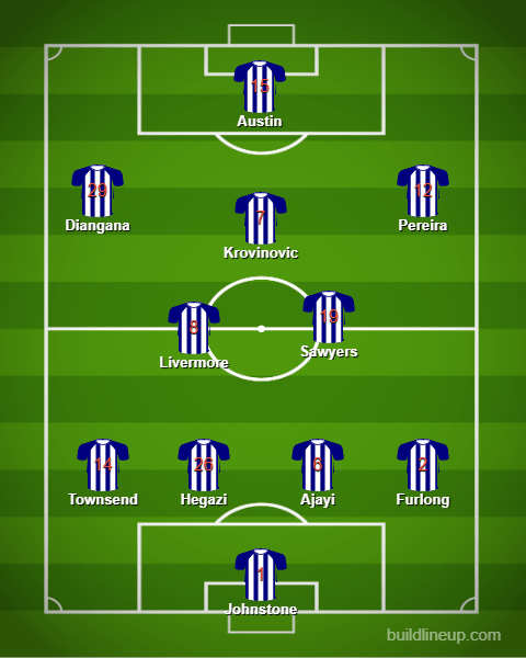 In line with a more attacking outlook, we’ve gone for a midfield three of Jake Livermore, Romaine Sawyers and Filip Krovinovic, with the latter sitting ahead of the established midfield duo.