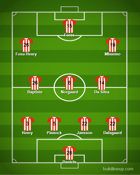 Luke Daniels will likely be chosen as goalkeeper behind a back four of Rico Henry, Ethan Pinnock, Pontus Jansson and Henrik Dalsgaard, which is about as strong as you can get defensively for the Bees.