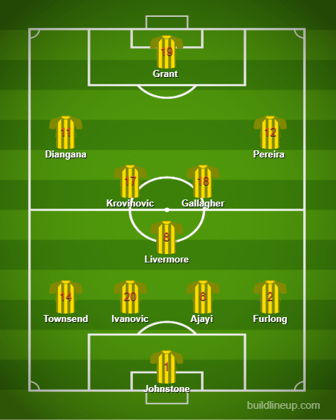 The game against Burnley saw witness to a bit of a shake-up from Bilic, switching back to a 4-3-3 system. The biggest change came in the defence, with Bilic opting for Darnell Furlong, Ahmed Hegazi, Branislav Ivanovic and Conor Townsend in the back-four.