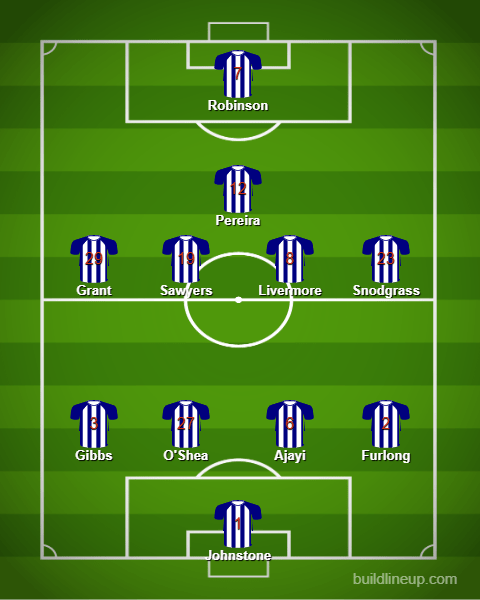 Matheus Pereira will be used to connect the midfield to the attack, with Callum Robinson up top. New signing Mbaye Diagne is unlikely to start, with talk of a suspension being carried over from his time with Galatasaray.