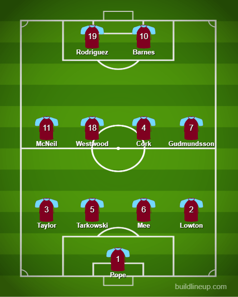 As a result, we’ve predicted a team of: Nick Pope in goal, a back four of Matt Lowton, James Tarkowski, Ben Mee and Charlie Taylor. Then in Midfield we’ve gone for Johan Gudmundsson, Jack Cork, Ashley Westwood and Dwight McNeil. Finally, up-top the strike pairing of Ashley Barnes and Baggies favourite Jay Rodriguez.